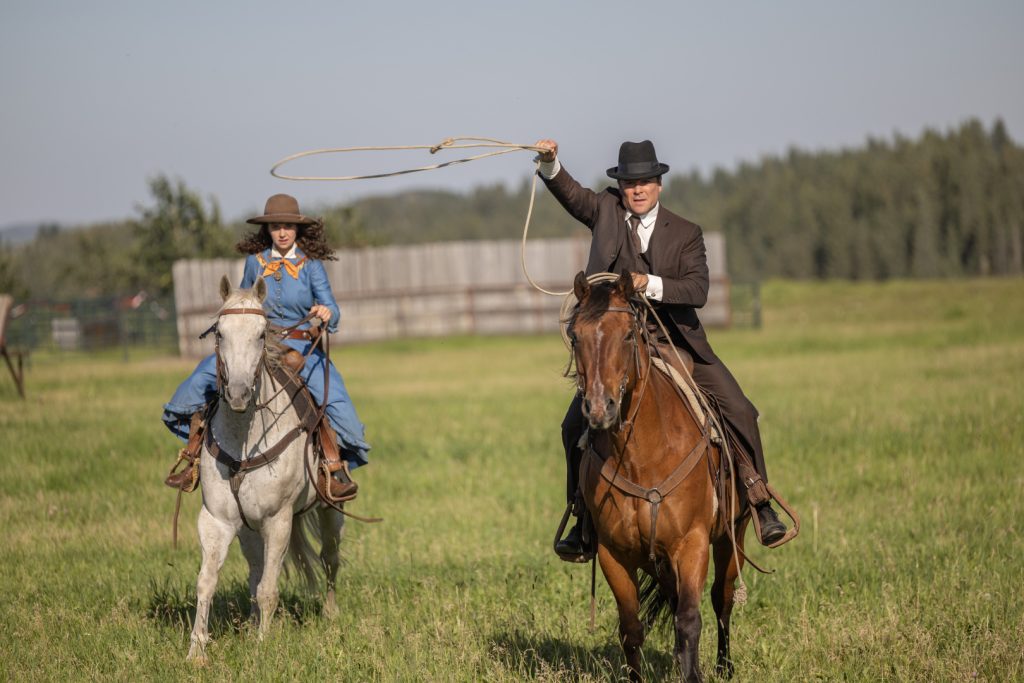 It’s 1910 and Murdoch Mysteries takes us on a brief train ride to Calgary, where Det. Murdoch and Inspector Brackenreid are to attend the first ever Calgary Stampede, known then simply as The Stampede. Google states stampede has many shades of meaning and they apply in tonight’s Murdoch in the Saddle. “Key Characteristics Sudden & Uncontrolled: Movement happens quickly and without order. Fear/Excitement: Often driven by panic or high emotion. Directional: A shared, rapid movement in one direction. Risk: Can lead to crushing and injuries due to extreme crowd density.” Bucking broncos, cowboys and guns, testosterone, betting and competing are sure ways to raise the spectre of danger, but Stampede boss Guy Weadick aims to keep things civil – famed sharpshooter Annie Oakley is in attendance. Oakley (Amber Marshall of CBC’s Heartland, transformed in a curly brunette wig) wows the cowpokes with her accuracy, shooting a coin dead centre yards away, and what ho! Brackenreid, who went to Alberta against his will, is delighted to find her; they’re old friends. A cowboy is murdered and Toronto’s finest are on the job; was the prize cash of $1000 the motive? Jealousy, greed? $500 is missing from a guest’s drawer. Was it case of battling brothers? Contestants? Gangsters? Meanwhile back at Toronto headquarters, Detective Llewellyn Watts establishes a romantic relationship. Always something cooking on MM. Jan 5 on CBC at 8 p.m.and CBC Gem now.